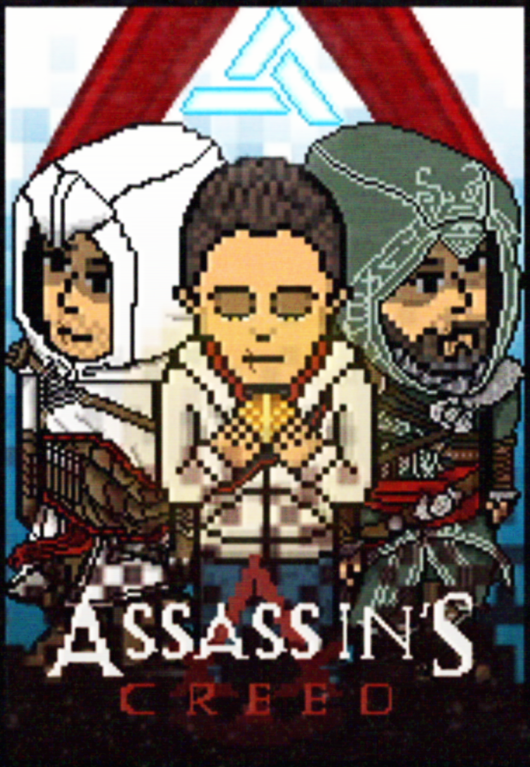 "Very good piece, I'm a huge fan of Assassin's Creed. The poster is very well organized, the characters' positions, the title, background, etc. My critique here would be more technical on the 'pixelling', on how different pixel sizes were used, and some rough lines/curves that wouldn't fly if being used in an official piece, so there's some room for study and learning, but a good entry and obvious good progress. Hoping to see more in the future."