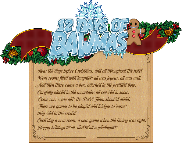 Join the room "[BaW] 12 Days of BaWmas" by Nightseal. You can also find it in the navigator under 'New' and 'Games'.